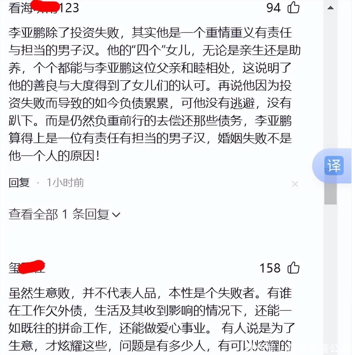 王菲金喜都没想到 第四个女儿会成为李亚鹏的救赎和涅槃重生的关键当李亚鹏的第四个女儿现身,全网都诧异了!恐怕王菲,李嫣,金喜都没想到,当李亚鹏最难的时候,只是见了一面第四个女儿,他就实现了口碑暴增,并且口碑180度翻盘,或许,第四个女儿就是李亚鹏翻盘的机会,涅槃重生的关键!我们都知道,李亚鹏作为一名演员,在他的人生后半段,他钟爱投资,各种尝试,想要成为一名经商奇才!